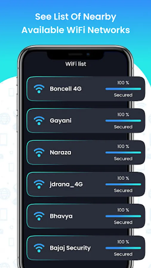 Show WIFI Password is used as WIFI scanner which provides a WIFI list available in your surroundings and allow you to connect by WIFI password show feature that helps you recover WIFI passwords. Save WIFI passwords app is a WIFI key finder app that has the ability to save all connected WIFI passwords which you connect through this Show WIFI Password.