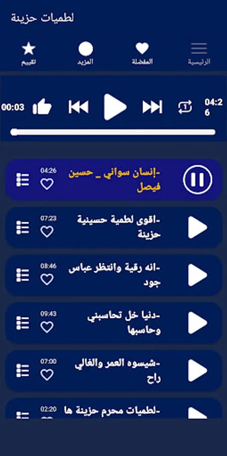 Where we have included the best bouquet of popular sad Husseiniya songs by Shiite artists with continuous updating to develop the application and add other songs ...