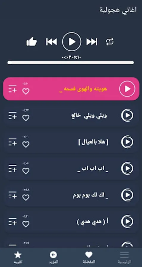 Where we added a package of the best Hajwala songs, with a continuous update to develop the application and add other songs ...