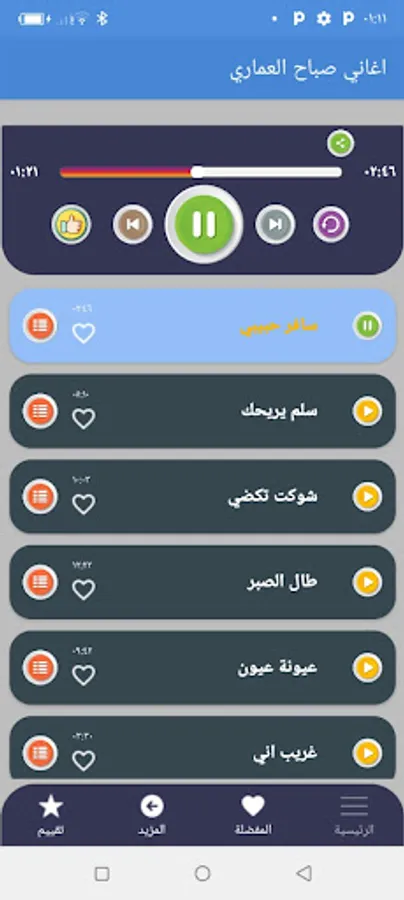 If you liked the application of the songs of aghani Sabah Al-Amari without the Internet, do not forget to leave us a comment and evaluate the application of the songs of 2021 without the net with five stars, please
