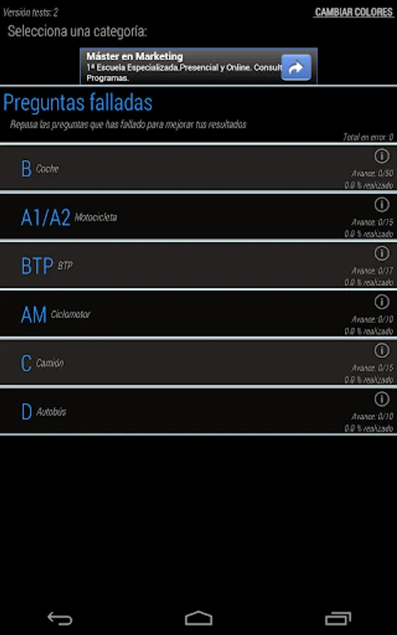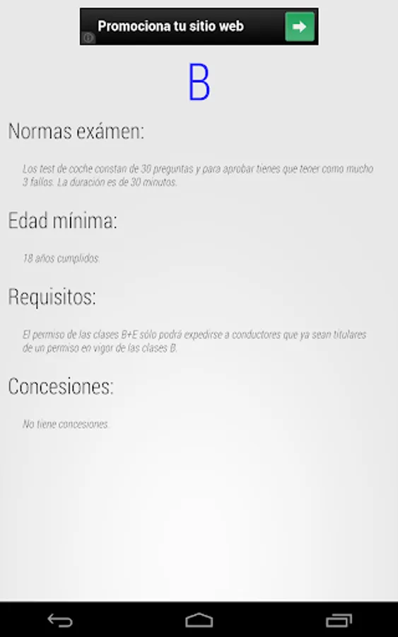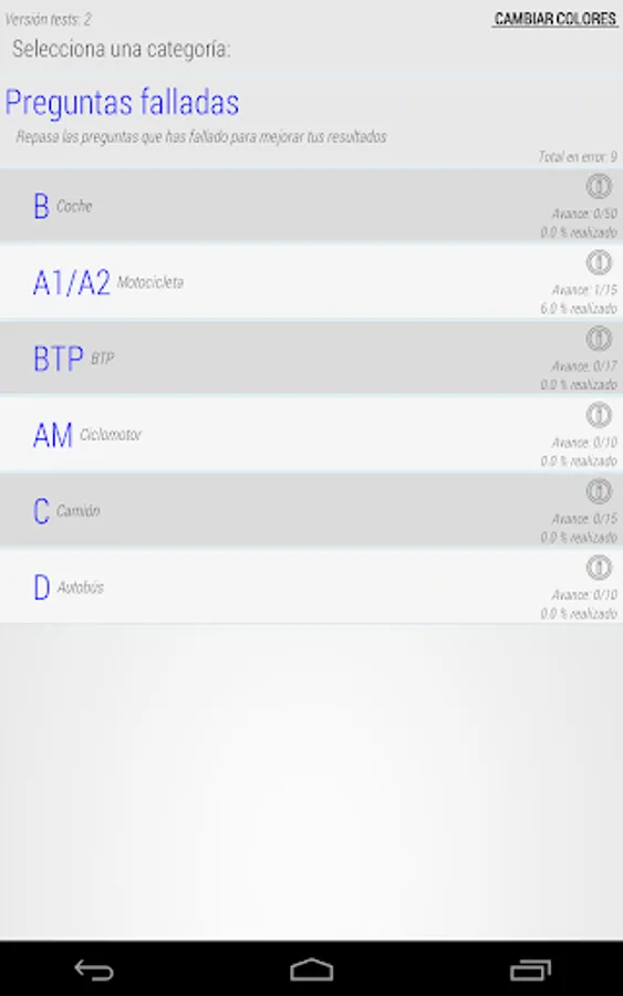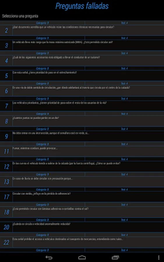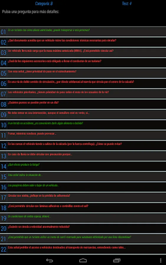 Si estás buscando tests para el examen de conducir de la DGT gratuitos esta es tu aplicación. Te presentamos una de las mejores aplicaciones para hacer tests de autoescuela. Te ayudamos a prepararte el examen teórico de conducir para todos estos permisos: * B. * A1/A2. * BTP. * AM. * C. * D. No encontrarás más tests GRATIS en ninguna otra aplicación. Si encuentras alguna aplicación con más tests gratuitos avísanos te lo agradeceremos!!!. Esta aplicación sirve para prepararte el examen teórico de conducir y gracias a su gran número de tests gratuitos aumentarás tus probabilidades de aprobar. Muchas suerte con el examen. Es posible que la aplicación contenga errores. Por favor, si ves alguno coméntanoslo y lo arreglaremos rapidísimo.