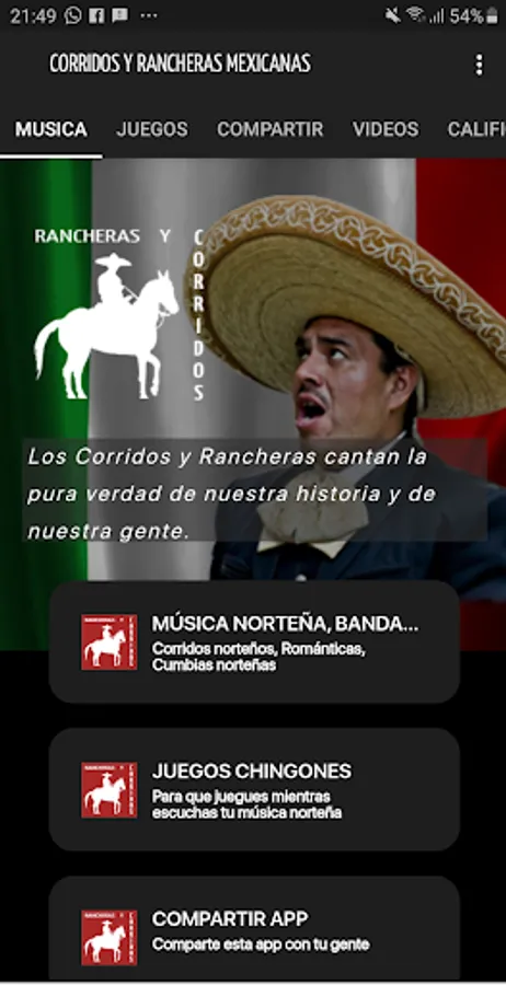 Hello friends. We present our new Ranchera Music application. In our free ranchera music app you can keep up to date with all the ranchera music and Mexican corridos that you like the most. Ranchera music and Mexican corridos are the musical genre that never goes out of style, since in them the pure truth is sung!