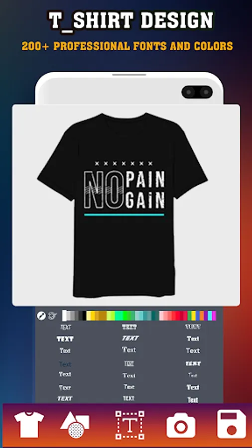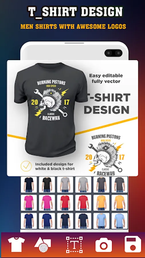 T-shirt design is fast and easy to use app with tons of Arts, Colors, T_Shirts & Textures.