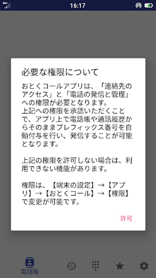 Otoku Call is an application that can automatically place a number called a “prefix” that is specified when making a call before the destination phone number. (Prefix number is not displayed to the other party, only your phone number is displayed.)