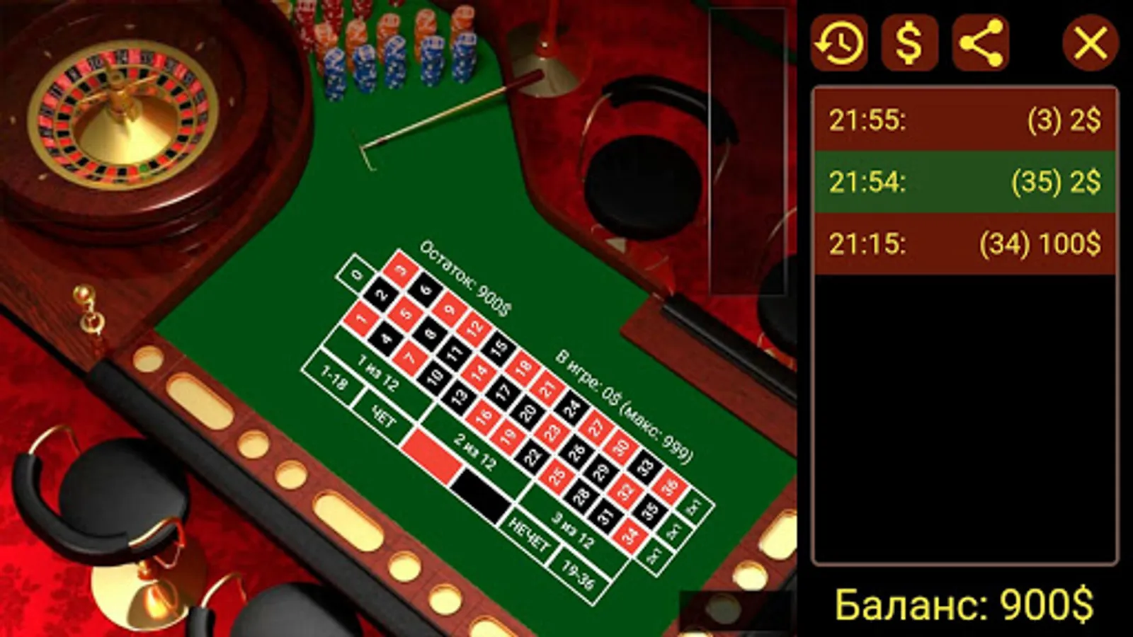 3D European roulette simulator with realistic graphics, stunning sound effects and online player rating.