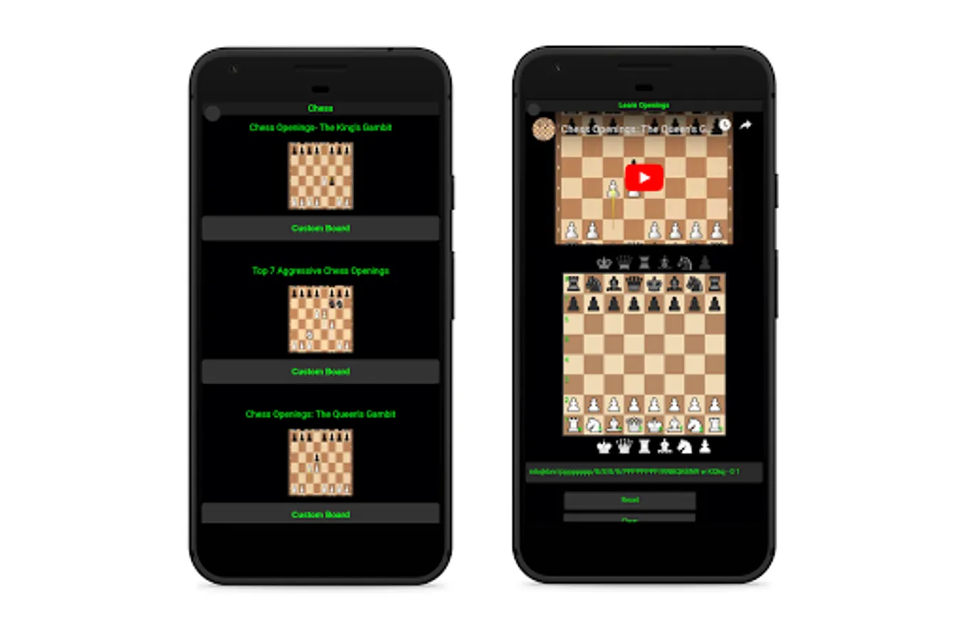 ♚ Learn the openings watching video tutorials with a custom chess board at your fingertips.