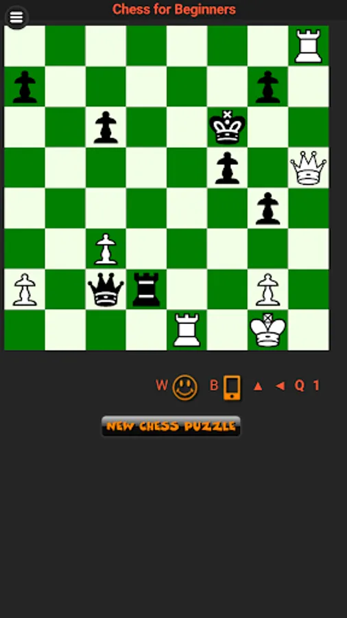 The game includes about 1,000 chess puzzles - Mate in One - that can be randomly loaded as a training aid to help develop the chess vision for beginners.