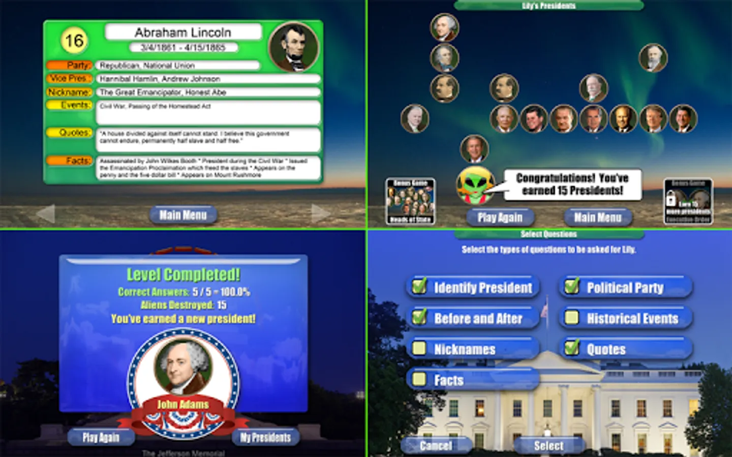 Presidents vs. Aliens® is an educational app for all ages that's actually FUN to play. Try it now and enjoy three games for the price of one!