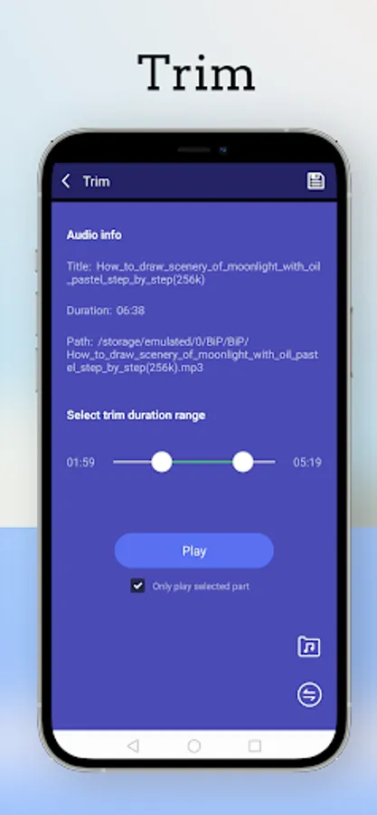 - Trim Audio: Crop a part of the audio as a ringtone, alarm, and notification tone.