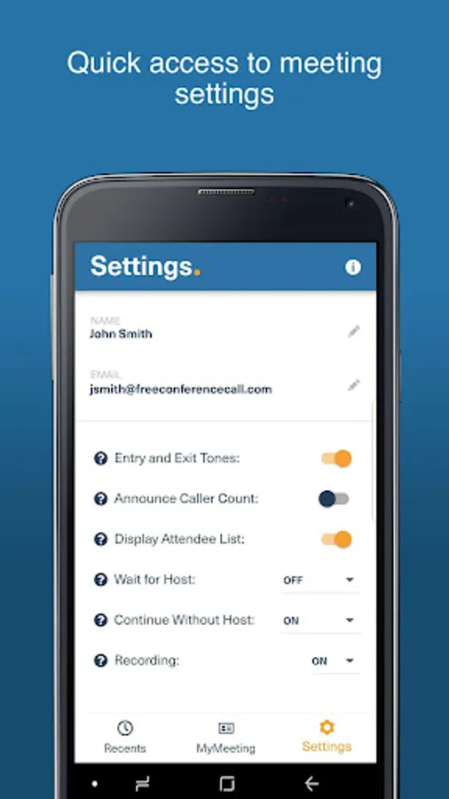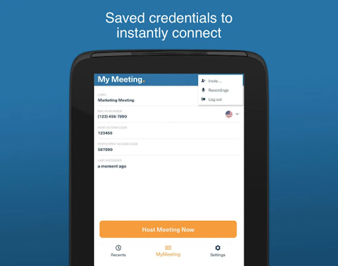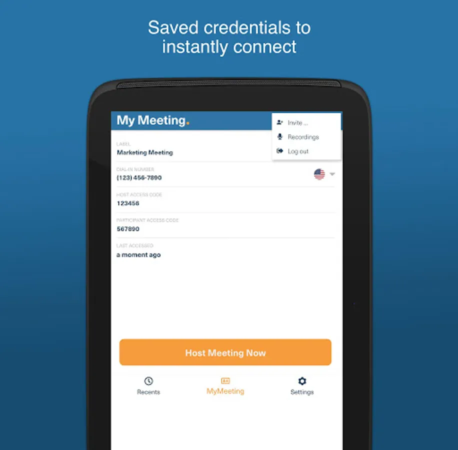 Select your conferencing line from your list of meetings and tap the Host Meeting Now icon to host or join a conference call