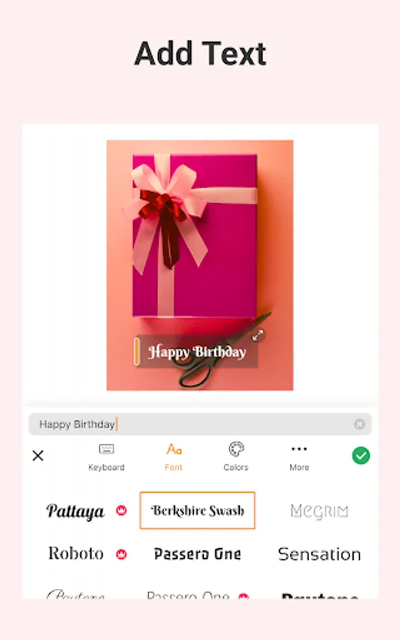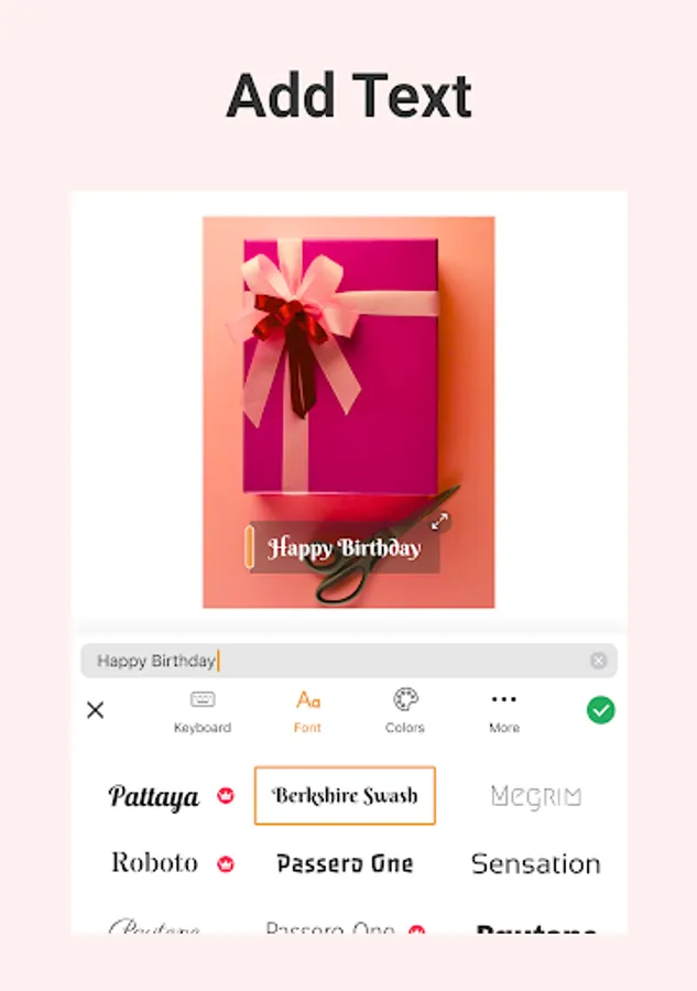 A collage is an expression. What's a better way to express yourself than words? Choose from hundreds of artistic font styles to bring your message to life. Adjust font color, shadows, background, and more!