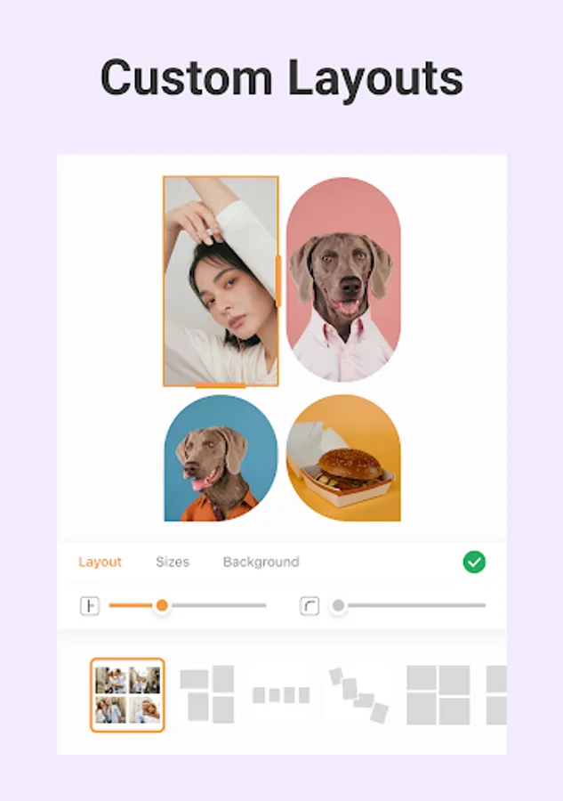 Whether you have a single image or 30, we have the perfect layout for you to create the best photo collage. Personalize your collage by adjusting border radius, spacing, and photo size.