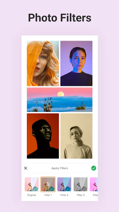 - Photo editor with photo filters, crop, rotate, brightness, and more.