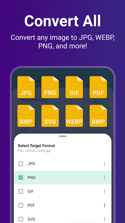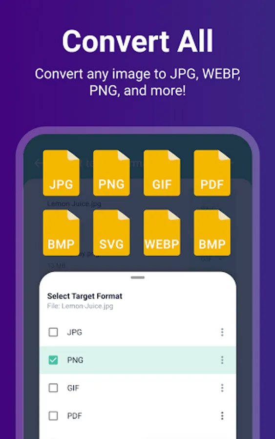 Best image converter app to easily convert any image to JPG, PNG, SVG, WebP, BMP, PDF, and more! Download now for free.
