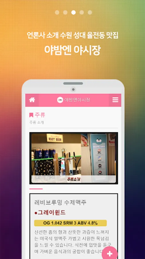 Located in Suwon-dong, Suwon-gu, Suwon-si, Gyeonggi-do, "Yabamen Night Market" is a place of young people near Sungdae. It is a pub pub representing Suwon Chang-gu with various homemade beer and snacks in modern interior.