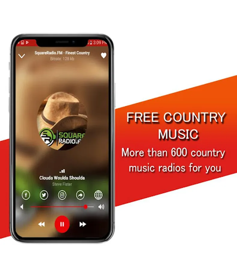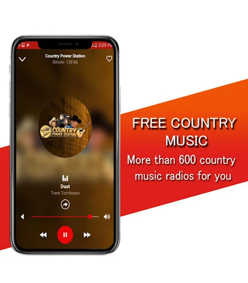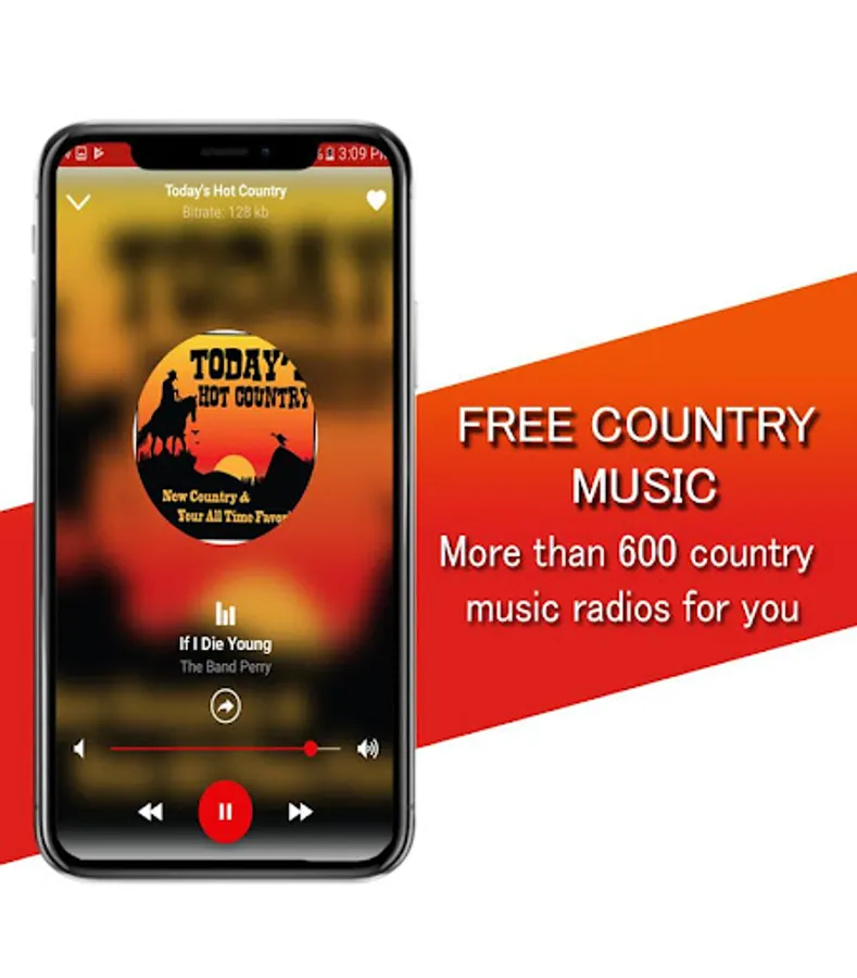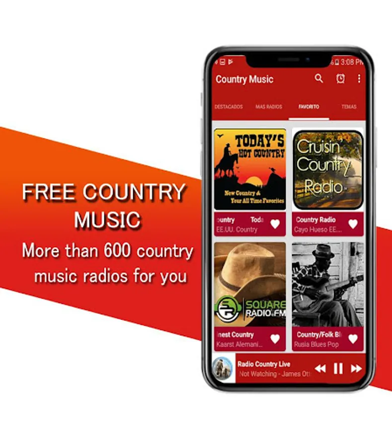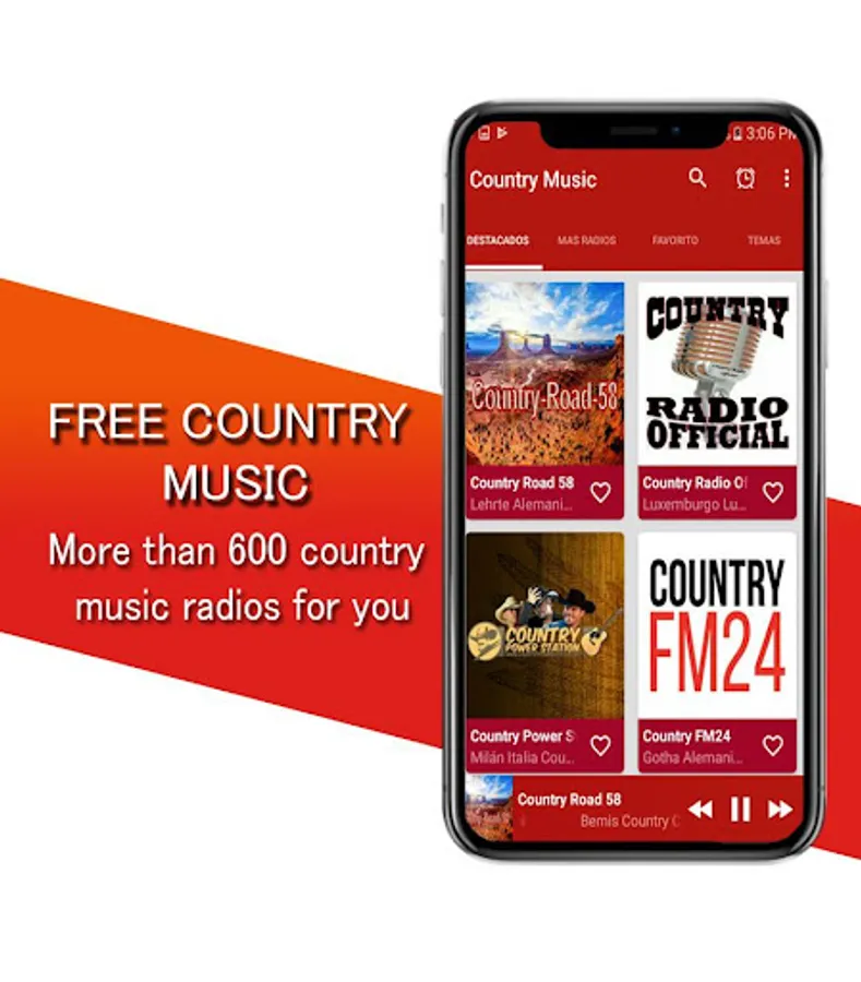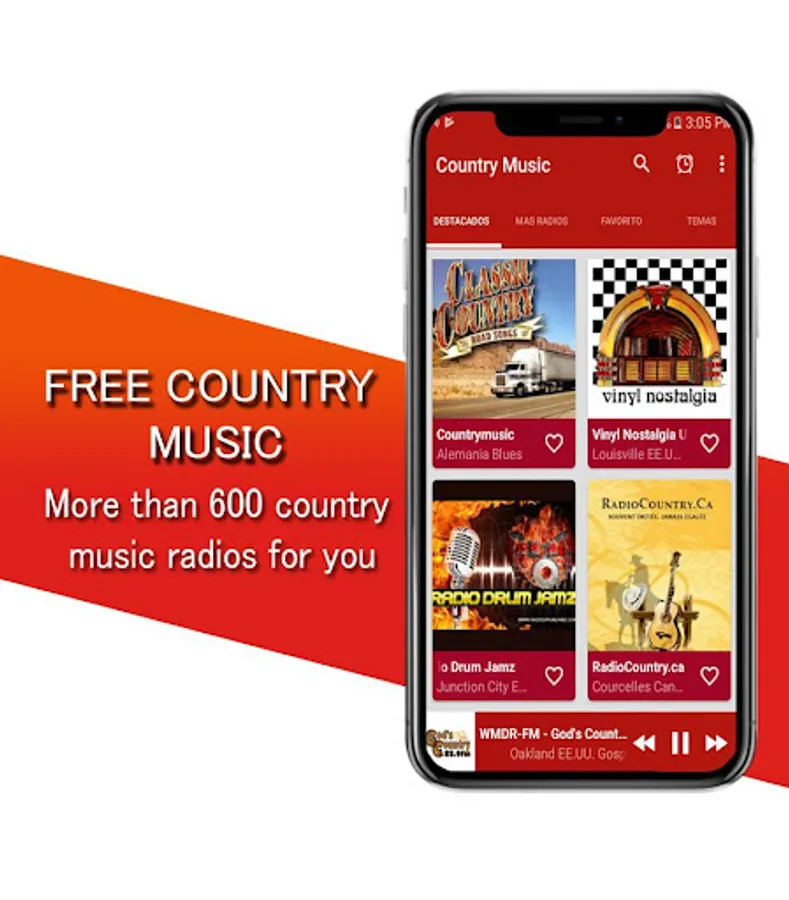 Country music free with a modern and elegant interface, plus you have the option of selecting quick access to your favorite country music radio.