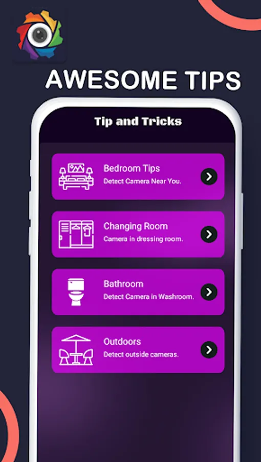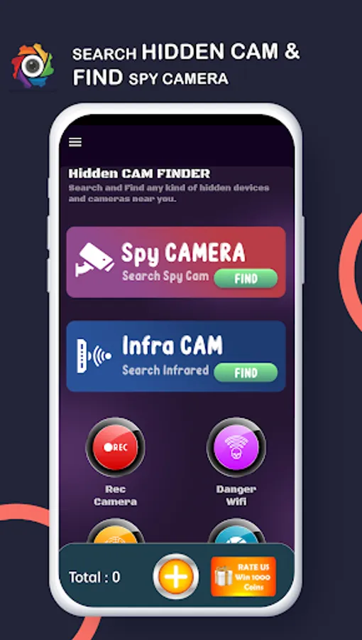Hidden camera finder app is the most professional secret camera finder app which help you to secure your privacy and personal videos and pictures. So just install our free hidden camera app and tap on scan button where you have any doubt. Don’t forget to share with your friends who always looking for best hidden camera app.