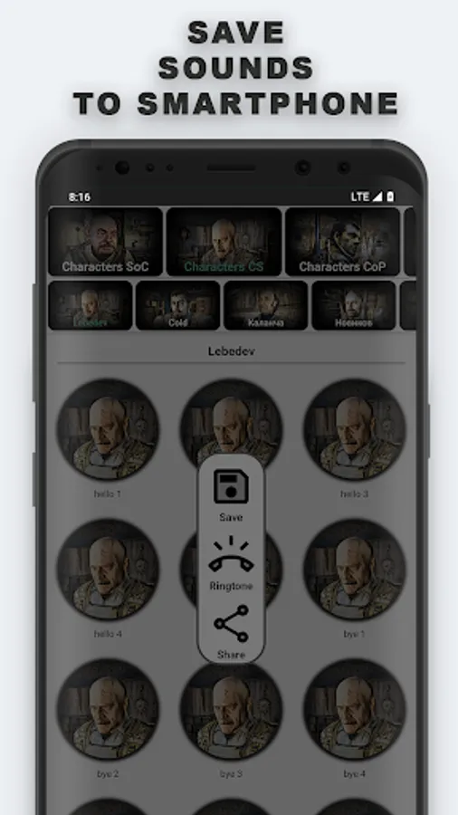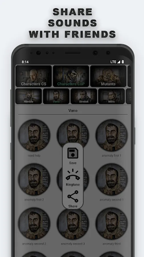 And also mutants, jokes, stories, legends, guitar, anomalies and other sounds from the game.