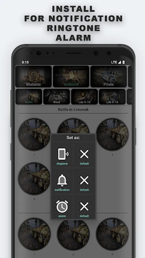 Set as ringtone, notification or alarm.