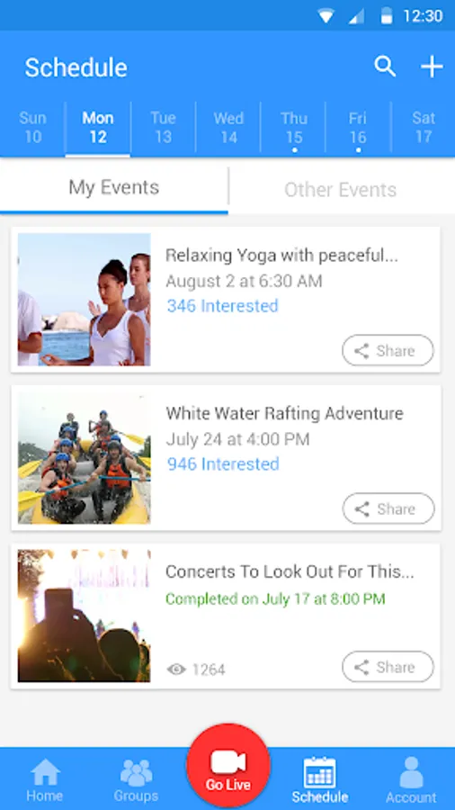 •Schedule: Now Schedule events and inform your followers when you are going live.
