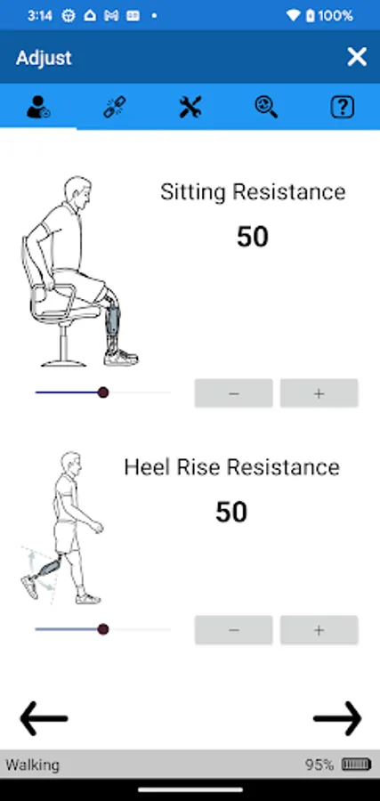 Designed for authorized clinical prosthetist, the GaitLab App makes set up fast and easy. Complete ankle set up can now be done with a few taps of a finger. Optimizing alignment as well as resistance settings for plantar flexion, dorsiflexion and toe stiffness is equally straightforward with intuitive navigation functions.