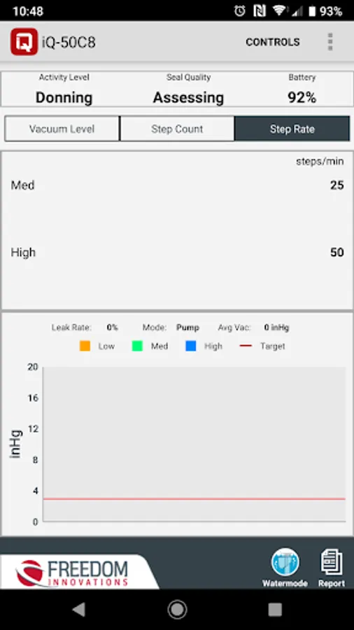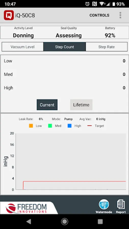 The Freedom iQ Vacuum System is a microprocessor controlled, automatically adjusting vacuum system that monitors activity to control the amount of pressure in the prosthetic socket for the changing needs of the user. The iQ Vac mobile application has portals for both patients and prosthetists to view and modify settings in the iQ Vacuum System and to generate outcomes reports.