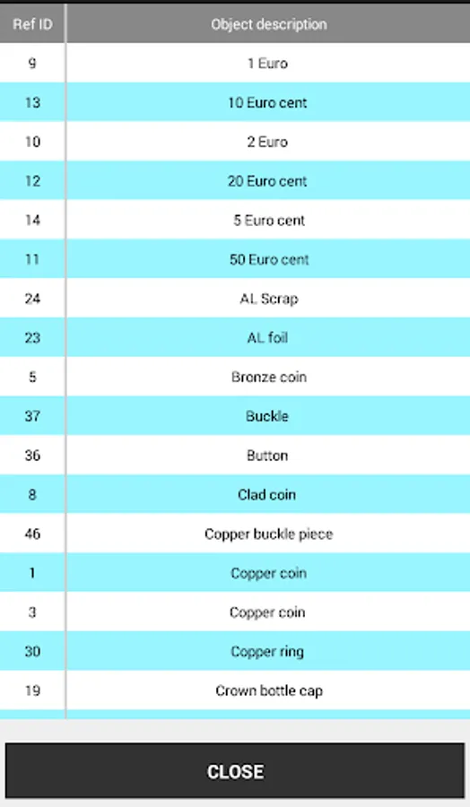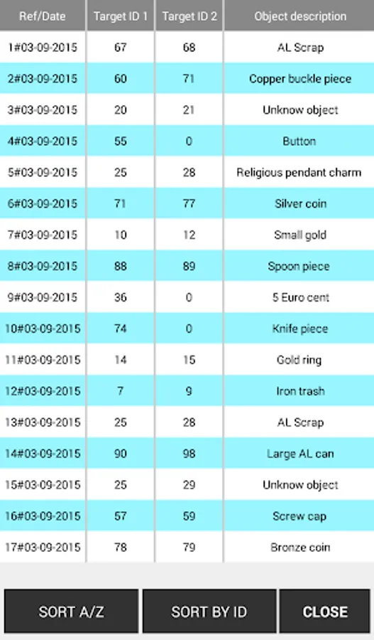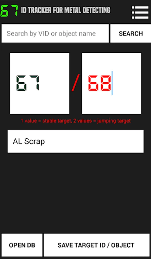 ID Tracker For Metal Metecting can be used to associate a number (target ID displayed on Metal Detector) to a specific object, it is usefull to study how the metal detector reacts to different objects.