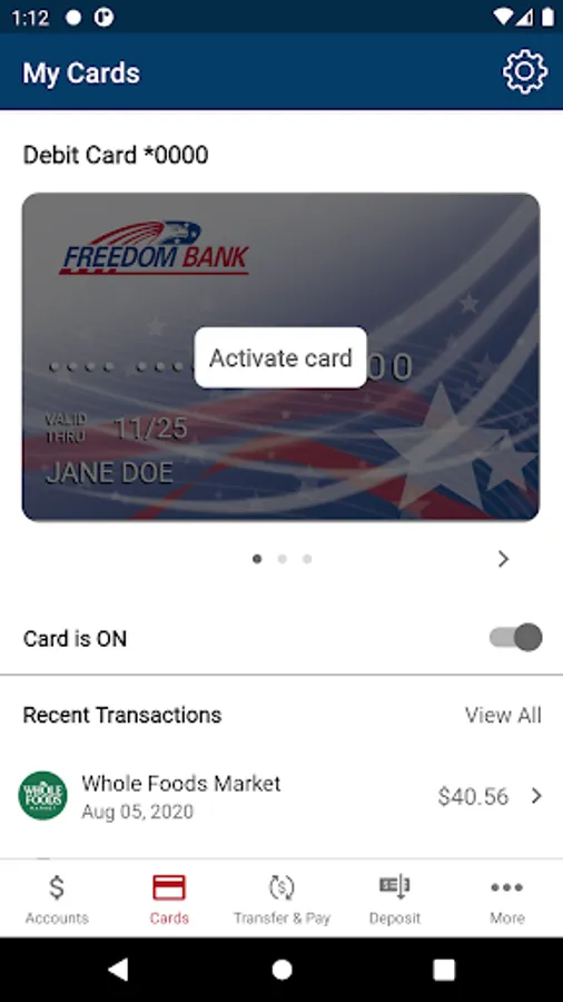 • Turn your debit card on or off to prevent unauthorized transactions.