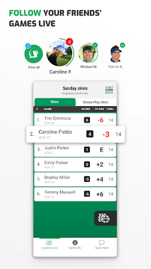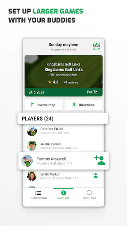 Build games with friends, arrange competitions & choose from 20 game formats, whilst using the golf score keeper & getting live golf scorecard updates to see who’s on top of the leaderboard.