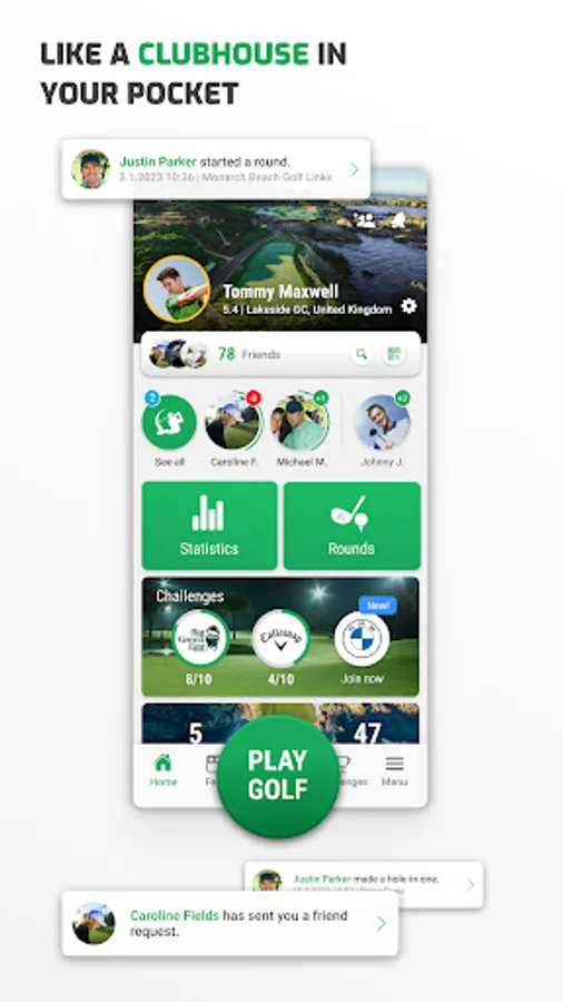 - Friends on course notifications allow you to see how your friends are doing & comment their round