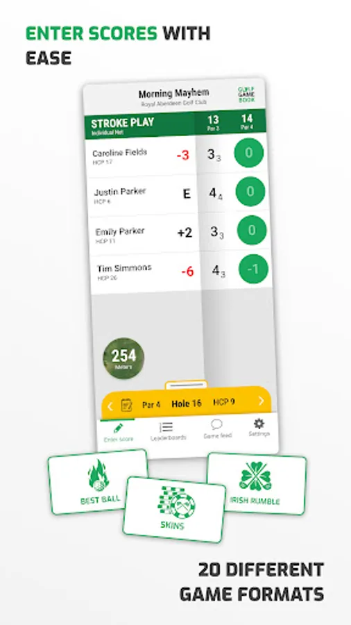 - 20 different game formats including skins, match play & a number of team games like scramble & better ball game formats