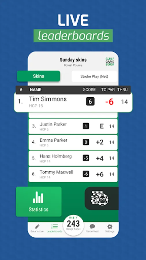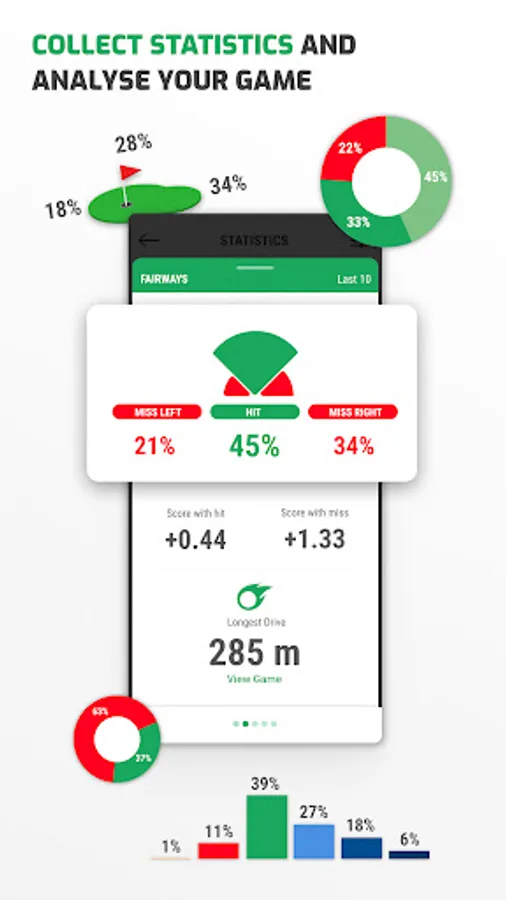 - Track even more details about your game with golf score keeper, golf scorecard, golf range finder, HCP group comparisons & eclectic golf scorecard - Collect advanced stats such as bunker shots, GIRs, chip shots, up & downs, first putt distances, fairway hits & where you missed the greens