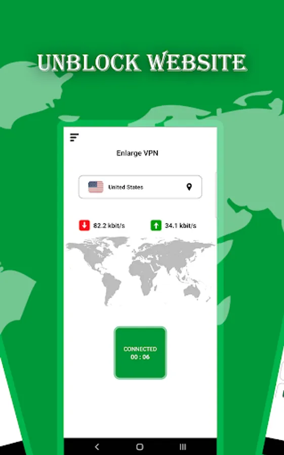 Enlarge VPN is a fast app that provides free VPN service. Not need any configuration, just simply click one button, you can access the Internet securely and anonymously.
