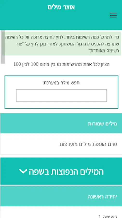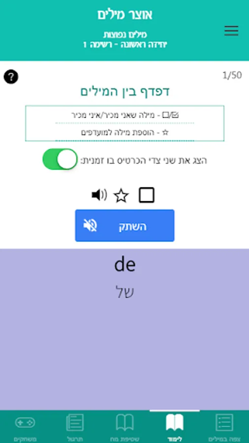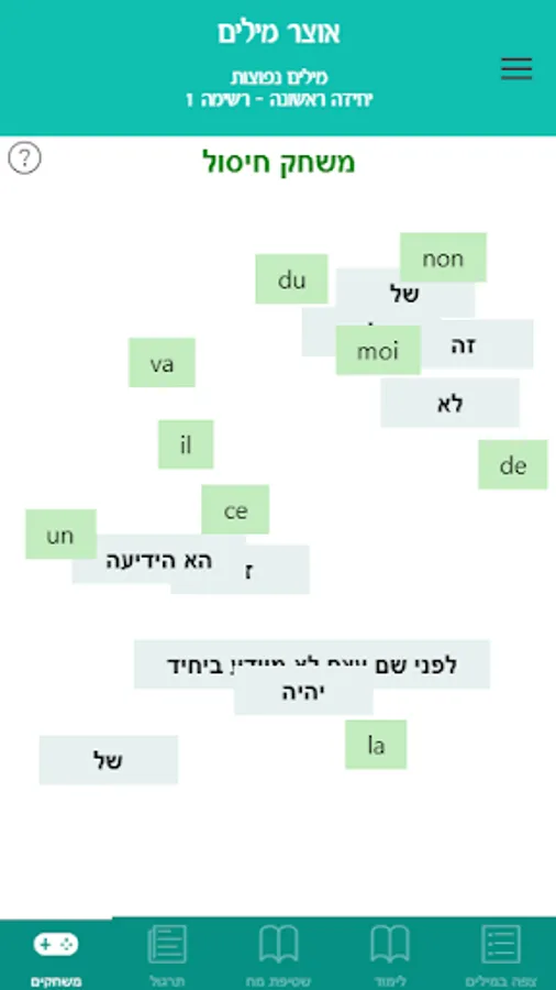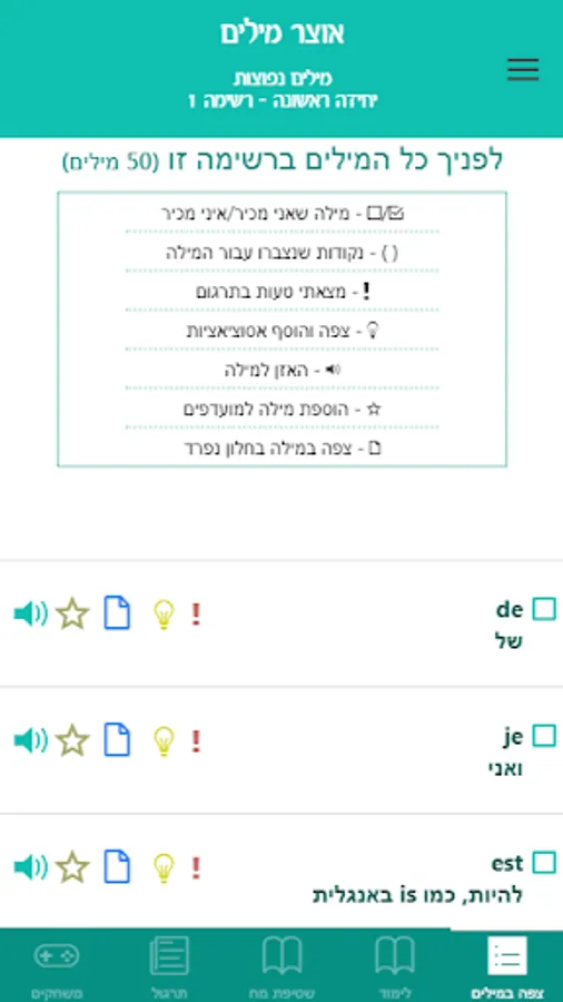 Our system includes the common words in the language, sorted, along with other useful words in the language (such as verbs) and enables smart learning so that your vocabulary will gradually improve until success! Our vocabulary system includes reading the words, saving words that are difficult for you, saving words that you got wrong a lot, lots of associations added by community members, progress meter, games, and more)