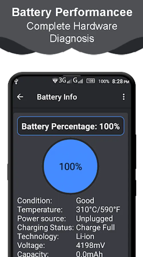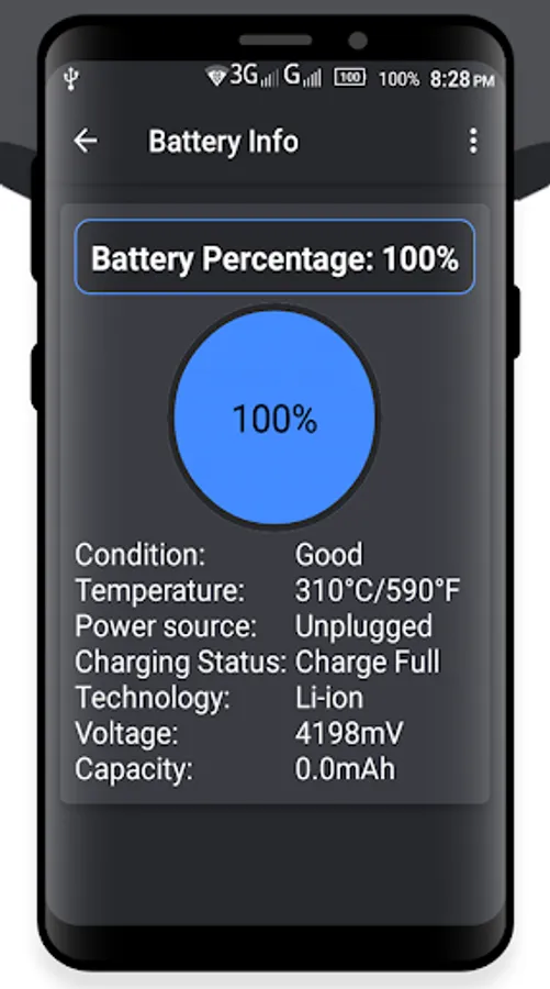 By using this Android Toolkit you find your phone Charging Level, Capacity of the Battery, Battery Health, temperature of the Battery.