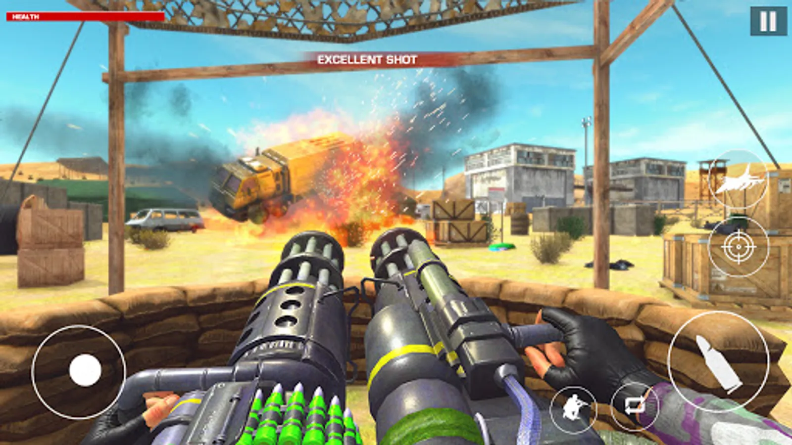 Military Gun Simulation is an amazing war game for fans of gunner games. It is an offline gun game where you are going to fight the frontline war battlefield as Special Forces. The best shooter feature will make military guns simulation games the ultimate shooting war offline games recommended for you. Allow yourself to have the best machine gun shooting games experience in a war game without internet. In this gun game adventure, AIM, Fire a SHOT and KILL the opponent by using your accurate war offline games shooting skills. The military gun game simulation is a combination of counter attack war action and cool shooter games. You will have a lot of best performance action and adventure in military guns offline games 2023. Heavy machine guns will be crucial for your survival in team shooting games. You need to have the best gunner skills to demolish your enemies in offline games.