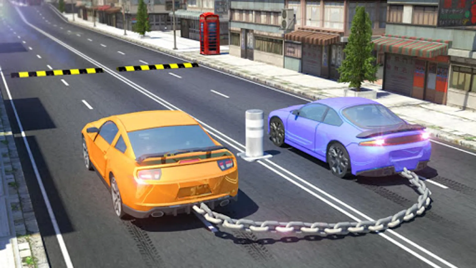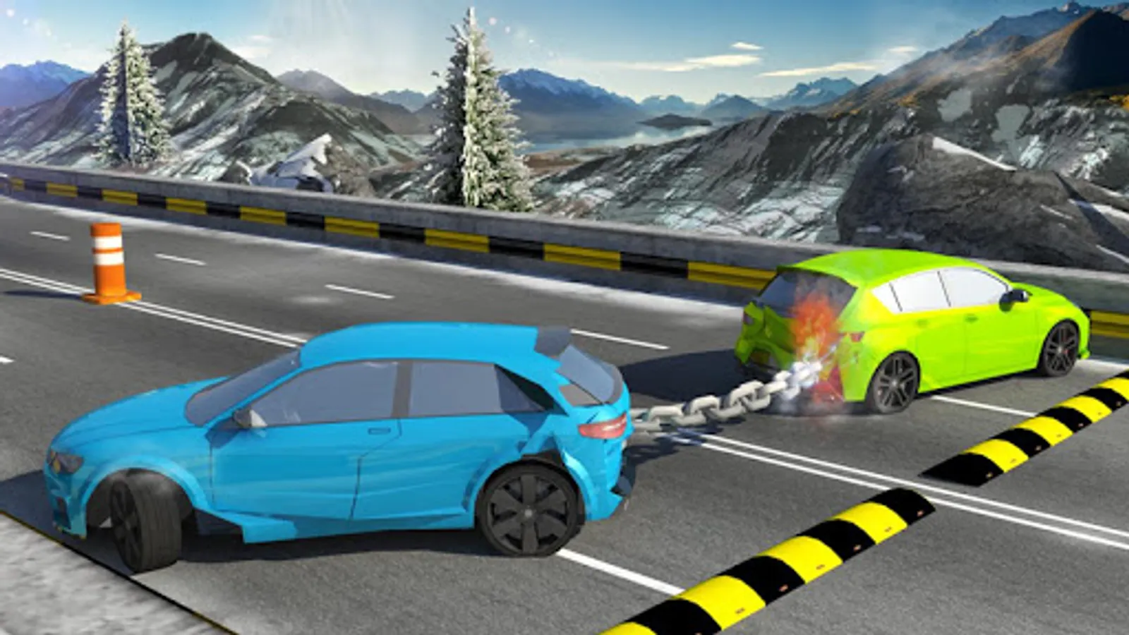 Get into the driving seat there is challenge for you. Chains have been attached to your and your rivals car. Drive your car as fast as you can into the oncoming road block so that the rivals car is totaled.