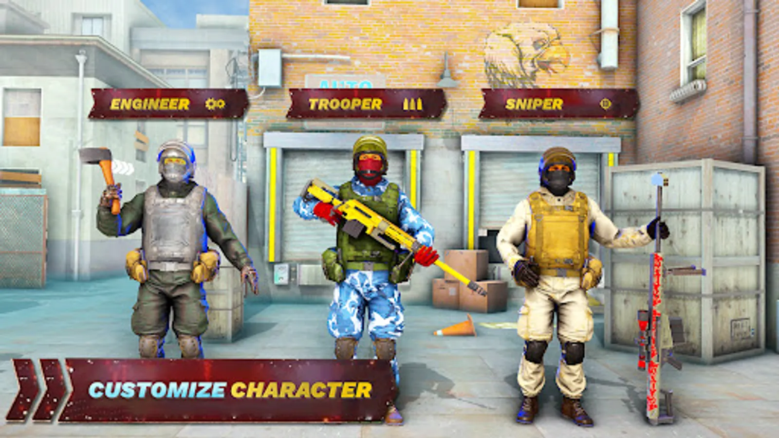 Be the last man standing of Cover Strike Army Gun Games. Do you want to be the best CS shooter hero? It's time to dare with tactical shooting games strategy. Play gun fire games action for free as fearless warrior at frontline shooting games missions.
