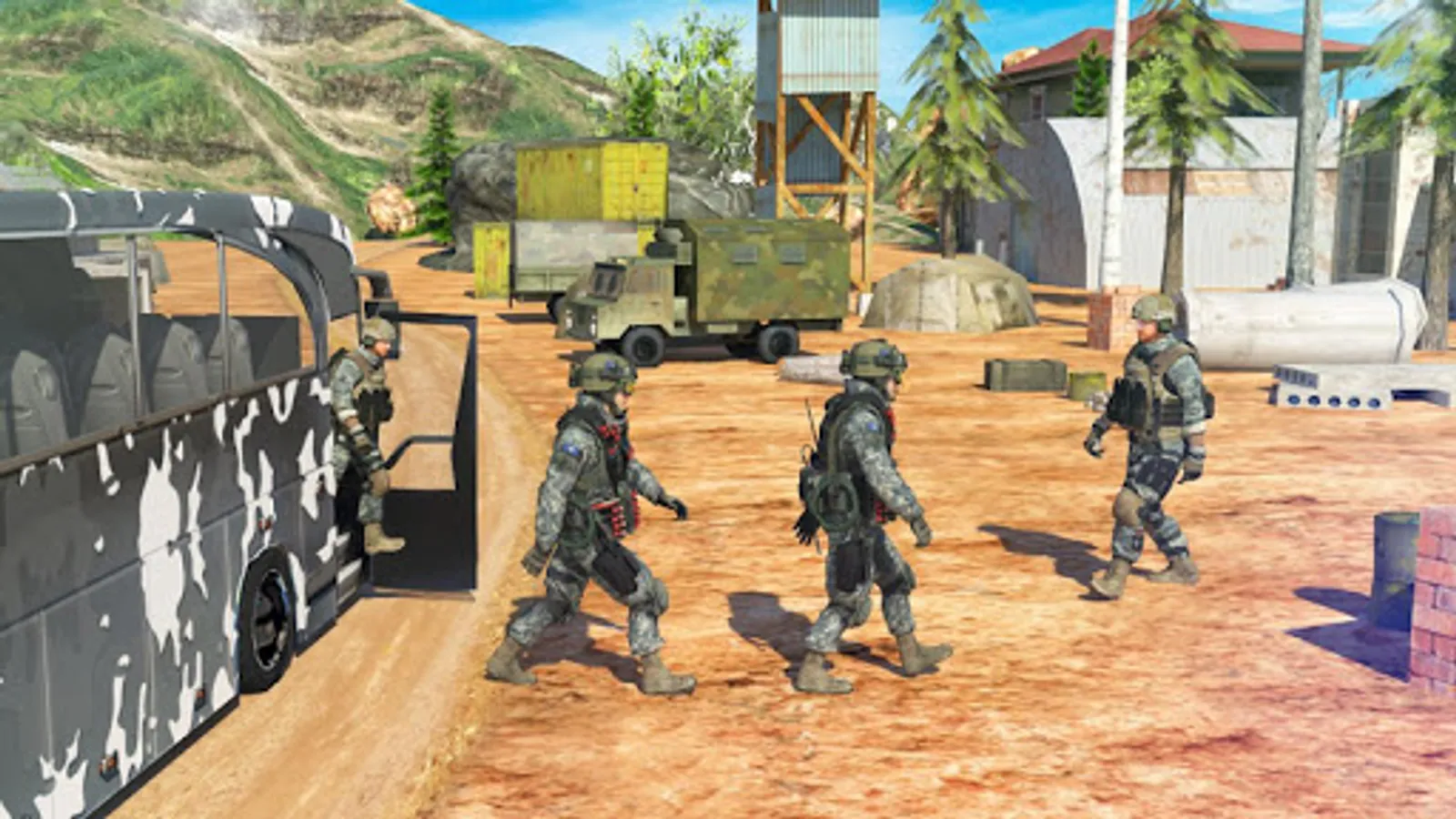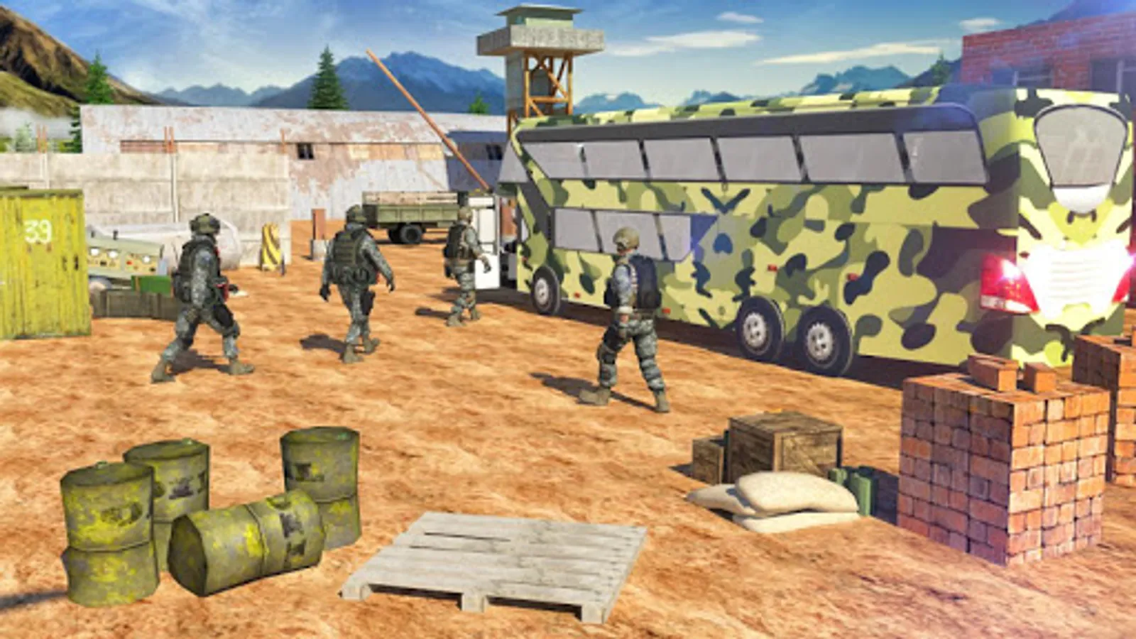 US Army Bus Driving is the new epic bus simulator in which you become a specialized army bus driver and pick up US army soldiers returning from overseas and drop them off to their homes. These army men will be tired because of their so be sure to drive safely so that they are happy. Be the best bus driver and drive through dangerous roads and drop each person at the right location. Upgrade your bus so that it can even reach to the farther states which will give you a larger bonus. Bus Driving is a easy job complete it with care and you will unlock amazing rewards and bonuses. Complete 20+ levels of epic bus driving fun.