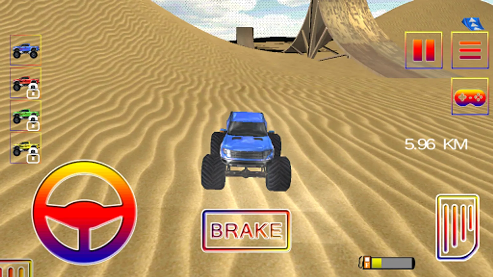 RC Monster Truck simulator 3D is the latest 4x4 truck simulator game that gives you the freedom to ride around and do cool stunts all day long, jump off,ramps some of the most incredible stunt ramps with powerful, super charged trucks and modified vehicles! Drive 10 to 20 kilometer to unlock more trucks.