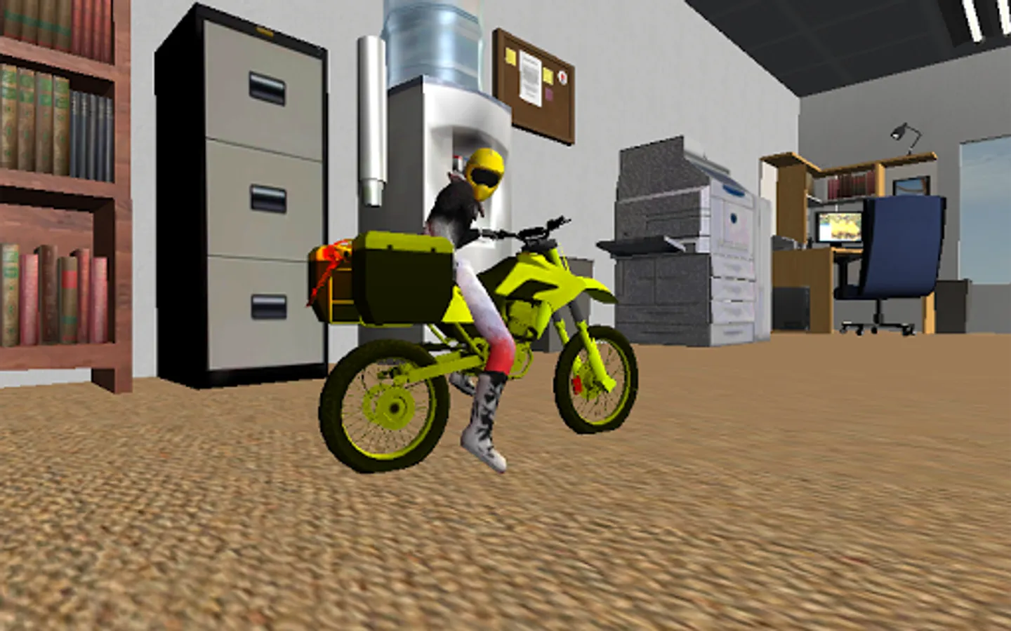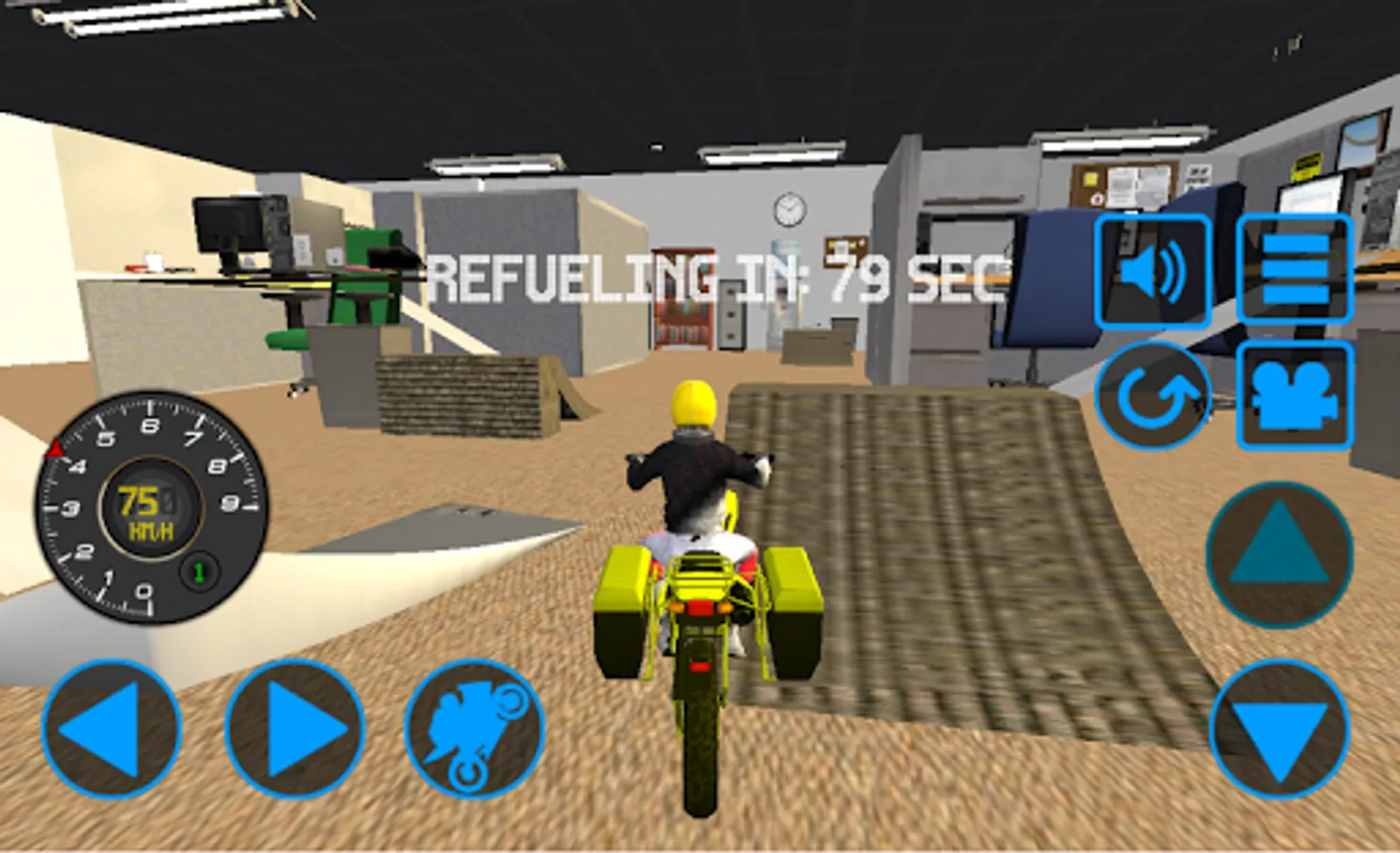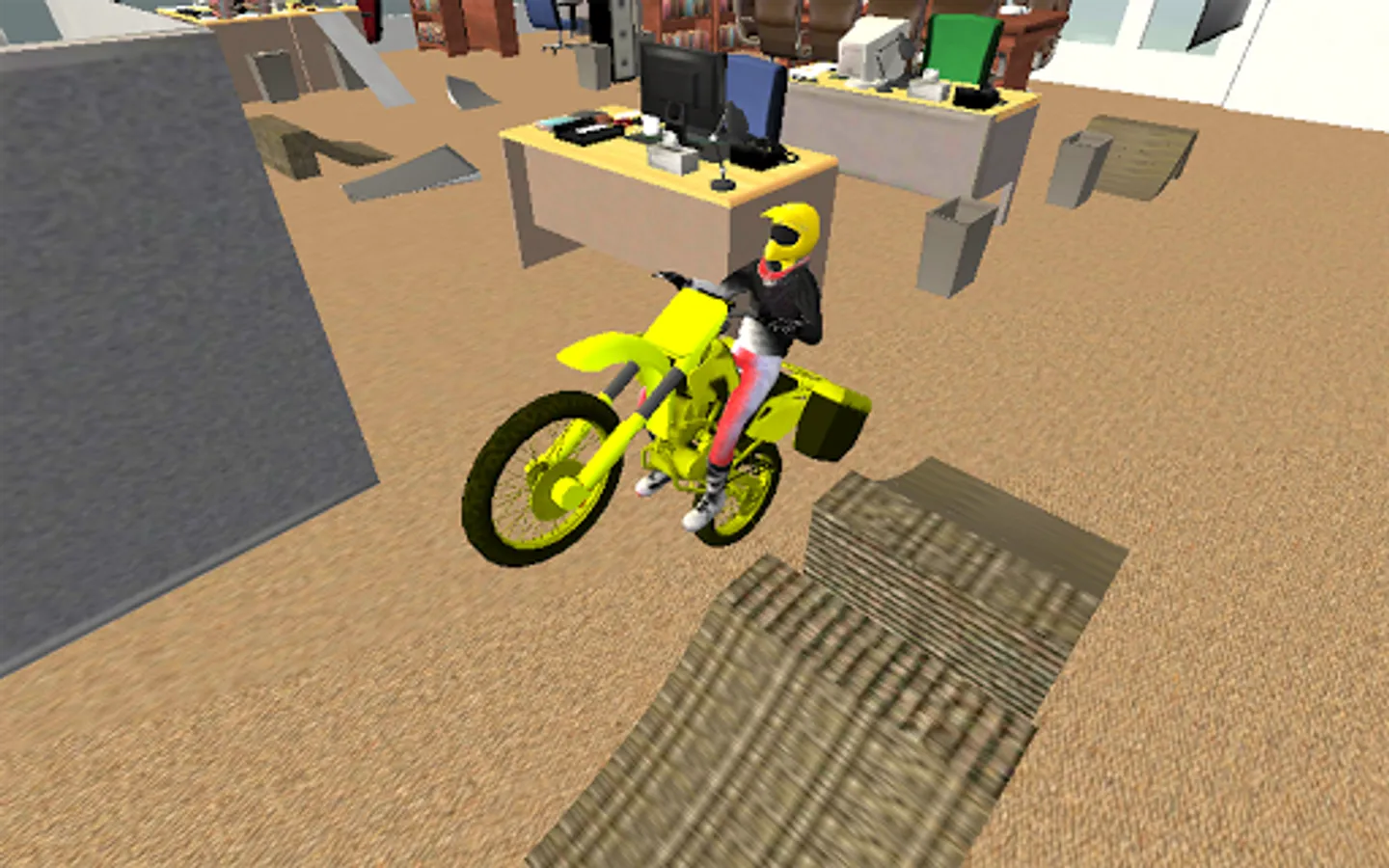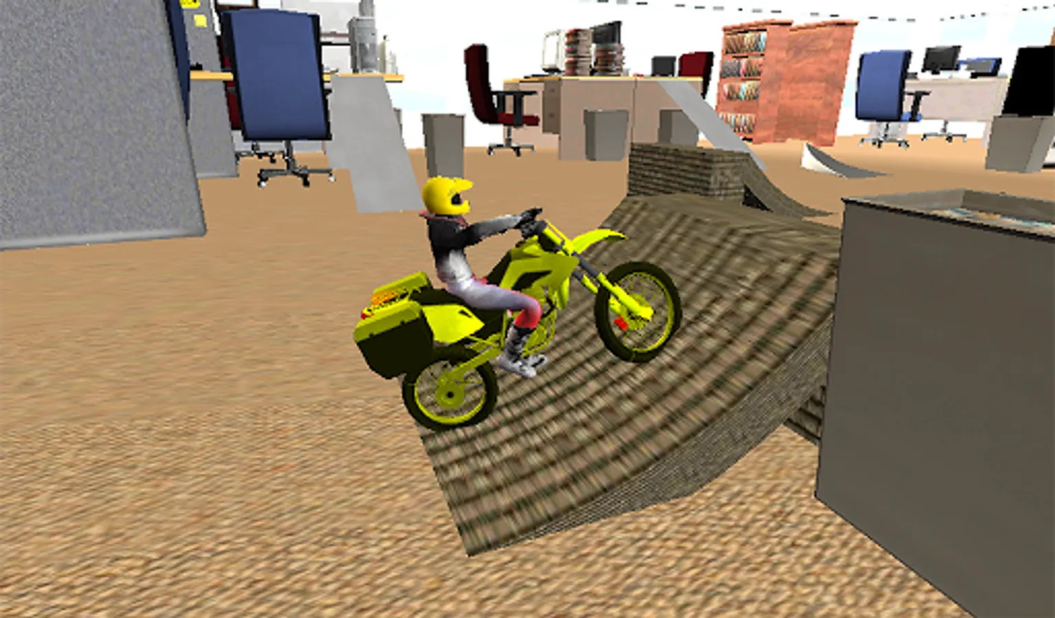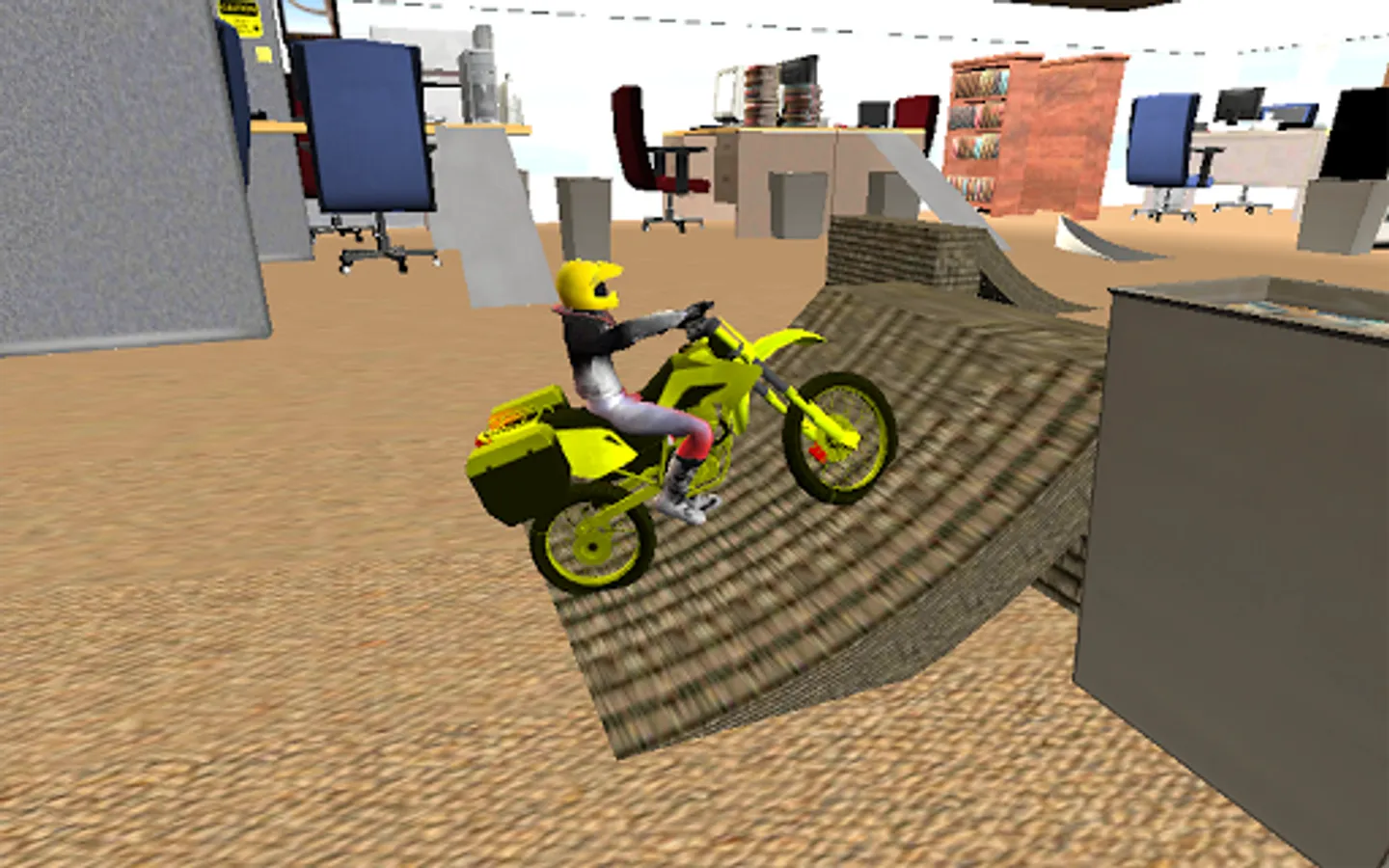 Office Motorbike Simulator 3D is set in a realistic working office environment, race your Office Motorbike Simulator over and under office utilities and furniture.Drive fast your super crazy bike and go off huge jumps like a real stunt driver on motocross bike in this realistic simulation game. Do you love to race fast paced 3D motocross motorbike racing games?