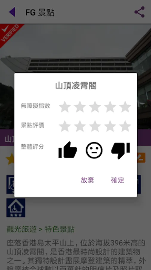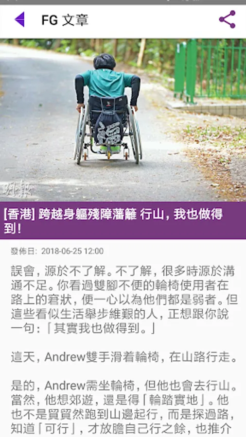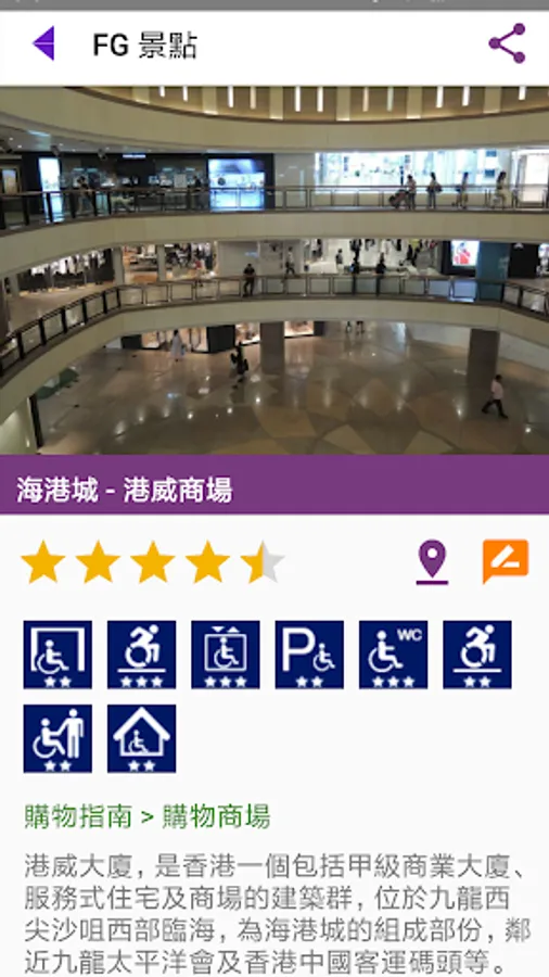 透過FG 無障礙生活平台,你可以隨時隨地找尋到各種無障礙資訊以及外遊路線指南,包括各類社會主要設施,例如大小購物商場、學校、餐廳、公園、各大旅遊景點及無障礙服務相關機構等。生活平台除了為用戶詳細介紹景點、交通以及無障礙資訊外,亦提供各類主要設施的無障礙指數及點評。用戶除了可以瀏覽其他用戶的評論外,更可以透過我們網站的社交 平台,即時分享親身的經歷,從而促進會員之間的交流。我們亦歡迎用戶提供身一身經驗,幫助我們改善及更新網站所有無障礙資訊。