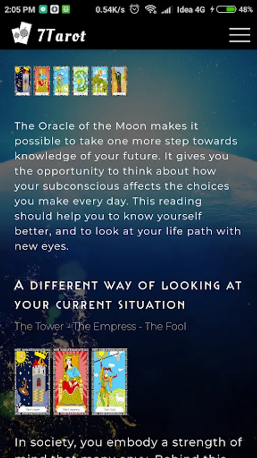 Download Moon Tarot Card Reading app and explore your Moon Tarot Card Reading.