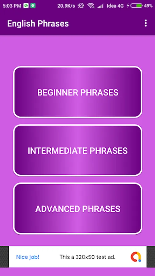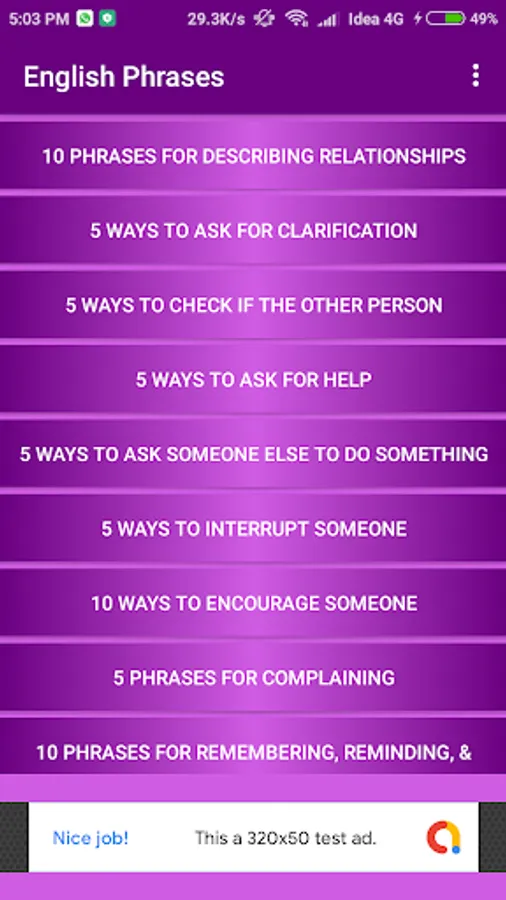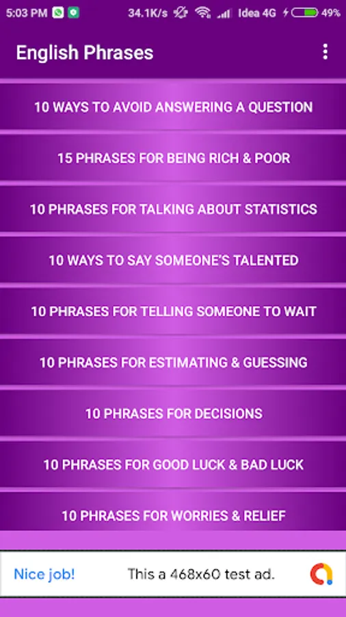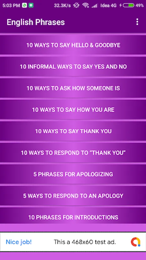 Common English Phrases App is categorize in three sections: