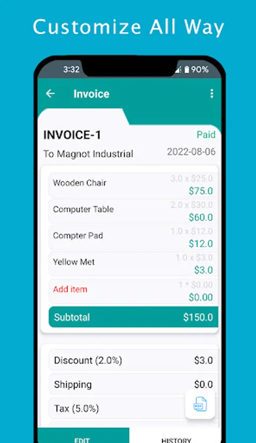 - Create Customized Invoice in PDF Document to share on whatsapp and mail app