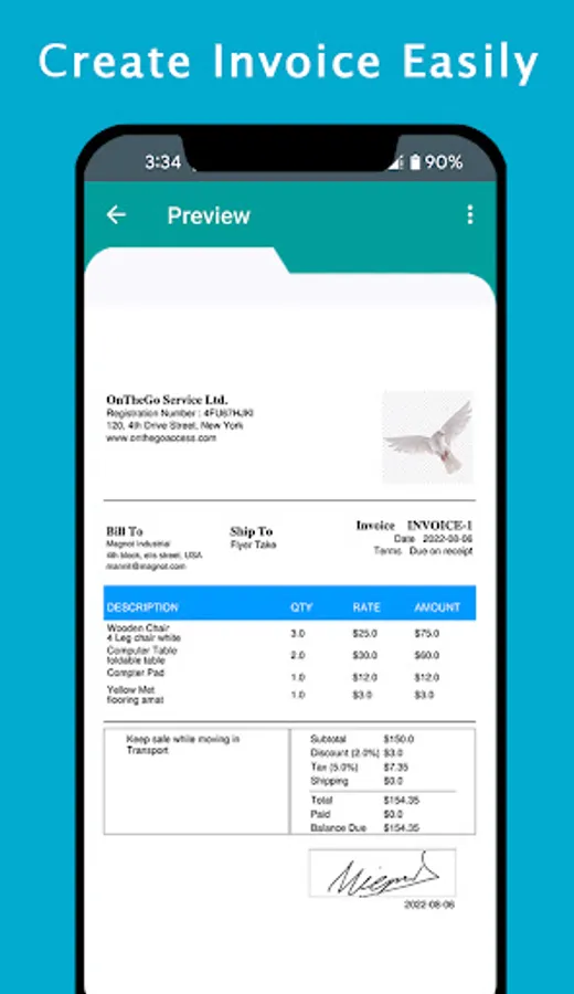 OnTheGo Invoice maker app will create invoices faster and easier from your smart phone