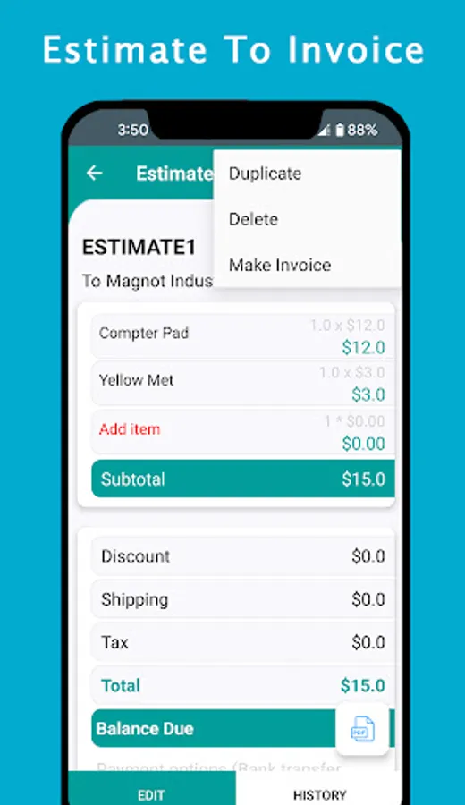Send Invoices and Estimates to your customer faster to win bid and do business faster. also you can directly convert estimates to invoices