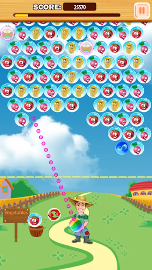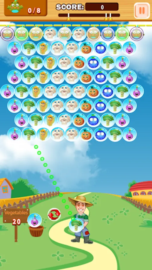 The Endless mode presents to you endless deluxe bubble shoot game where animated veggie bubbles keep coming to the bottom of the farm without stop. You need to be fast and sharp to blast the bubbles before they will cross the limit line.