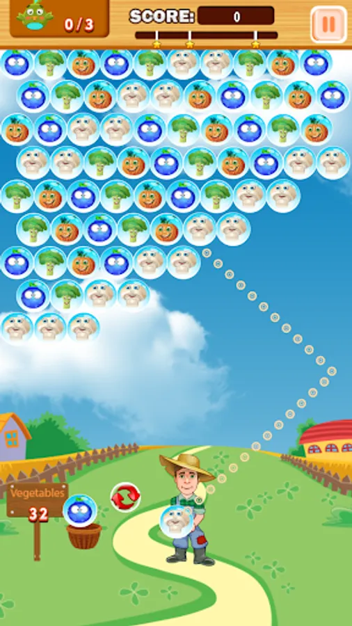 Shoot to match at least 3 vegetable bubbles of the same color.