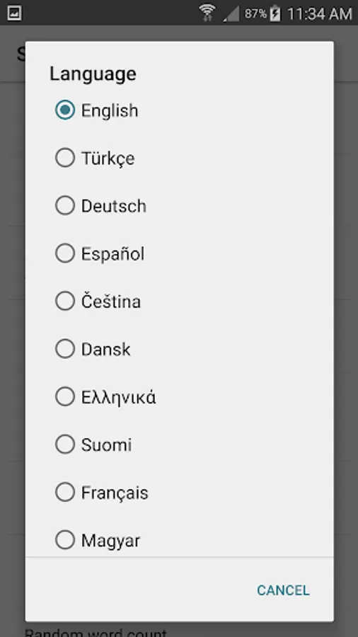 • 6 options of number of random words to select from Data Base